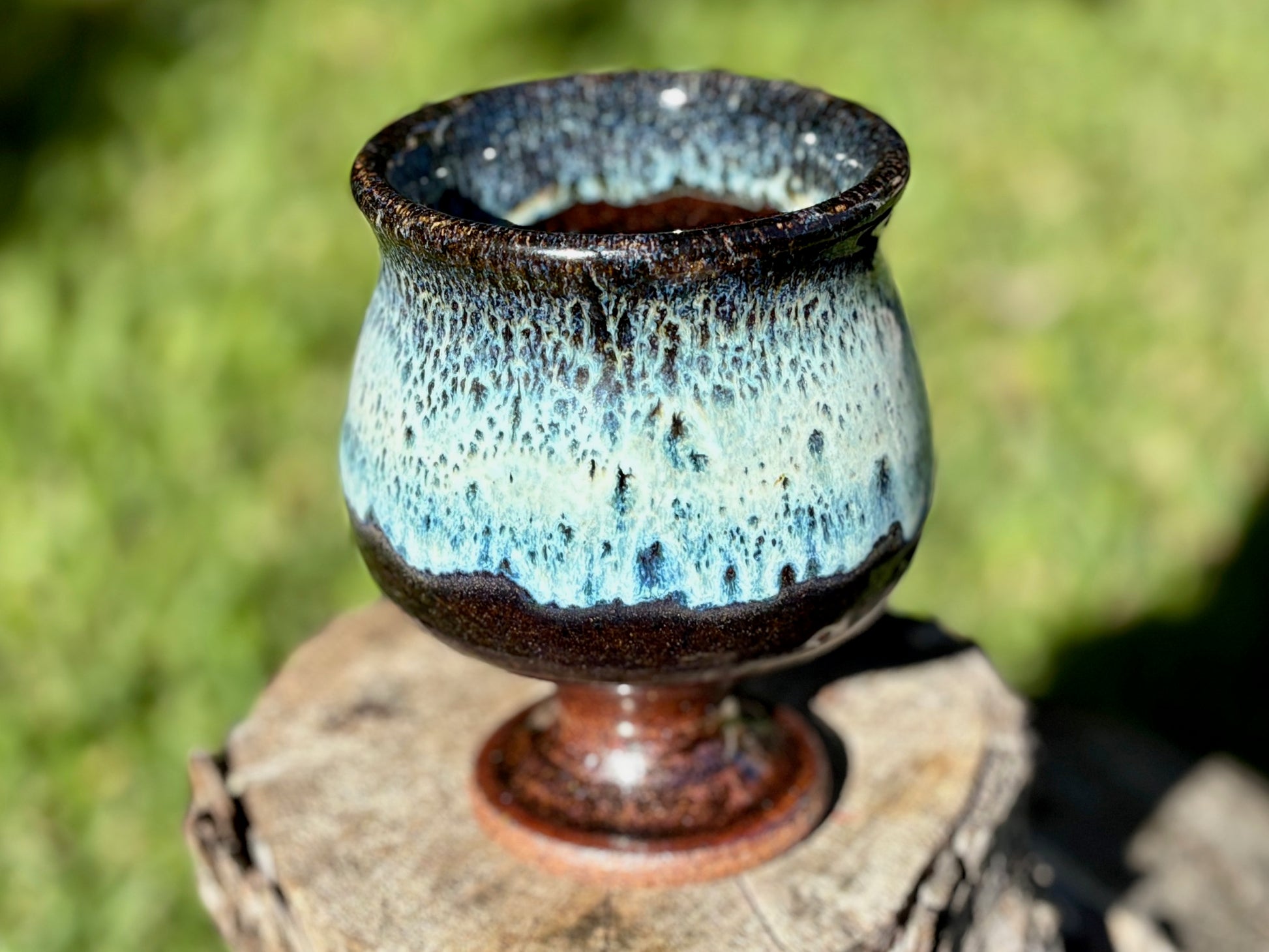 This goblet comes with a smoky blue glaze running down the body of the piece, and sits comfortably in the hand. So whether you're sailing to the Isle of Tortuga or venturing through your cue of Netflix favorites this holiday season, this goblet will go perfectly with all your season's spirits!