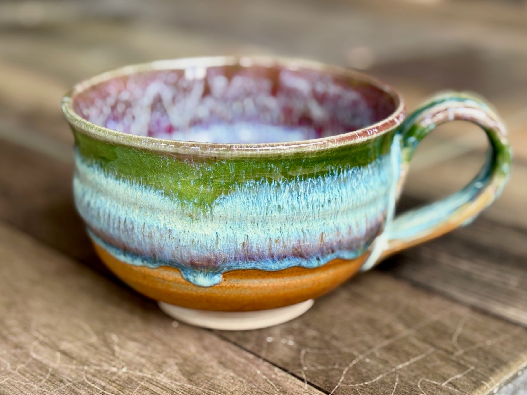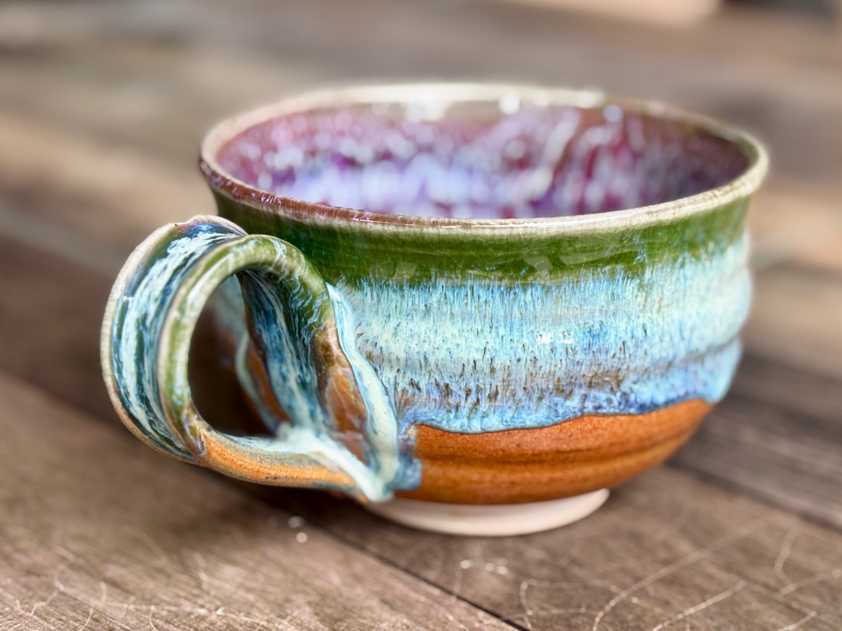 With it's wide, contoured handle, this chili bowl is a perfect piece for enjoying chili while listening to holiday music around the fireplace.